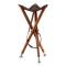 La base des pieds de la chaise comporte des plaques en acier inoxydable, qui assurent une meilleure fixation de la chaise sur le terrain. Le siège est en cuir naturel. Il est doté d'une sangle de sécurité utilisée pour plier les pieds en bois et pour faciliter le transport sur l'épaule. La hauteur correspond à la longueur des pieds en bois. La pointe en métal mesure 6 cm. La chaise ouverte mesure 74 cm de haut.