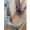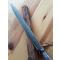 Ancien couteau algérien dit bou saadi .manche en corne de bélier avec sa courbure .lame de 20,5 cm un petit peu ciselé .etui en bois recouvert de cuir rouge décoré. Longueur total hors fourreau 37 cm