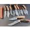 Très beau lot de 11 couteaux lame acier Damas manche en Bois et corne de Buffle et Bélier