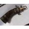 Le corp est en corne gravé cerclé d'argent et de cuivre, le bec vreseur est en os, 1,4Kg et 33Cm.