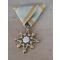 Très belle médaille militaire japonaise Ordre du Trésor Sacré. Modèle en argent massif plaqué or. Beau ruban. Belle présentation. Pour compléter un uniforme d'un soldat japon ou pour présenter en vitrine.