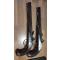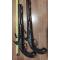 Belle paire de longs pistolets à silex. Une platine marquée LE FAURE PARIS, l'autre RUE D'AMBOISE. Bon état, bon fonctionnement. Restes de dorures sur les canons. Fines rayures cheveux. Baguettes fanon de baleine, embout corne. Détente réglable.