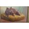 Tres jolie tableau , toile avec cadre d'un Chat sur son coussin réalisé à Alger en 51 ou 1959 voir photos détaillées , peinture signée] ou pour Marielle Margarot je crois.