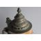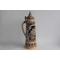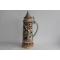 Très grande chope à bière allemande de 3 Litres en céramique, à décor en relief Frohe Hält dem wirt ein felt datée 1954 couvercle en étain bon état, repose-pouce cassé