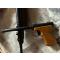 Diana 2 : pistolet "héroïque" de collection, années +/- 1960, mécanisme à ressort (!!!). Le canon intérieur est lisse. Le bouchon arrière doit être dévissé pour introduire le plomb puis revissé. Ensuite l'armement se fait en comprimant le puissant ressort en posant le bout du canon sur une surface plane (ou la paume de votre main si vous ne craignez pas :::) jusqu'à l'enclenchement. Le tir se fait par INERTIE (pas de détente d'air ou gaz comprimé) : quand on appuie sur la détente, le ressort se détend entrainant le canon avant jusqu'à son arrêt brutal en fin de course. Le plomb est alors éjecté par inertie. Pas une précision de concours de tir, mais quel design superbe !