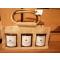 Trio de trois pots de miel de 250g dans un panier en toile de jute avec poignée en bois. Ce panier se compose d'un pot de miel d'acacia, d'un pot de miel de fleurs de forêt, d'un pot de miel de fleurs de prairie.