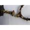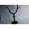 Intéressant et rare trophée de chasse en bois de cerf à décor gravé de Léda et le cygne, de glands et de feuilles de chêne socle en bois d'époque XIXe siècle, style Forêt noire bon état