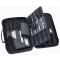 Trousse hôtelière garnie de 20 pièces avec 4 compartiments multi-rangements Composition : couteau de cuisine 25 cm couteaux d'office 6 - 8- 10 cm couteau désosseur 11 cm couteau à saigner 14 cm couteau chevalin 20 cm couteau de boucher 25 cm spatule inox 23 cm filet de sole 17 cm fusil 25 cm spatule mélamine 30 cm canneleur moule à pomme Ø 22 cm fourchette à viande zesteur éplucheur vide-pomme ciseaux crantés 21 cm limonadier