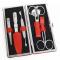 Trousse manucure Alpen, en cuir, fermoir cadre, 5 pièces inox satiné : ciseaux à ongles, ciseaux à envies, pince à épiler, lime à ongles, outil double usage avec repousse-chair et coupe cuticules.