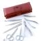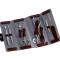 Trousse manucure à enrouler Alpen, cuir à fermeture pression, 8 pièces inox satiné : pince à ongles, pince à envies, ciseaux à ongles, ciseaux à envies, pince à épiler, repousse-chair et coupe cuticules.