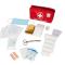 De plus, elle est équipée de deux écharpes triangulaires pour immobiliser les membres en cas de blessure, ainsi que d’un rouleau adhésif pour sparadrap pour fixer les pansements en place.