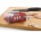 Une aiguille à larder est un outil très efficace et à usage spécifique. Une aiguille à larder est utilisée pour insérer de petites bandes froides de graisse de porc assaisonnée, appelées lardons ou lardons, dans un rôti de viande crue, de volaille ou de gibier pour assurer un arrosage interne pendant la cuisson du rôti.