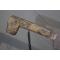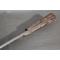 Poignée faite de deux plaquettes de cornes rivetées et d’une mitre en alliage cuivreux (la deuxième mitre est manquante). La forme de la poignée rappelle quant à elle celle des sabres Kabyles dit « flissa ».