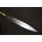 Poignée en bois de cervidé avec longue virole en laiton et cuivre.