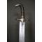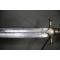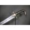 Pommeau en métal argenté. Garde à deux quillons droits se terminant en demi-sphères. Garde en alliage de cuivre anciennement argenté. Garde maintenue à la poignée par un cerclage en fil de laiton. La garde a un léger jeu.