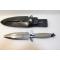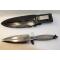 Ce couteau distinctif est doté de deux lames en acier inoxydable à un seul tranchant. La poignée est enveloppée de fil d'argent, ce qui offre une prise sûre. Ce couteau comprend le cachet personnel de Gil Hibben gravé sur la lame et un étui en cuir véritable personnalisé.