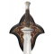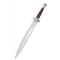 Cette pièce de collection authentique et détaillée est une réplique sous licence officielle de l'accessoire original du film de la trilogie Le Seigneur des anneaux. United Cutlery, leader du secteur dans la fabrication de reproductions de films, a reproduit l'épée originale avec une précision méticuleuse et en utilisant les meilleurs matériaux de qualité. La priorité absolue a été donnée à la reproduction exacte de tous les détails. La lame en forme de feuille de l'épée est fabriquée en acier inoxydable. Le pommeau et la garde sont en métal et la poignée est recouverte de cuir véritable.