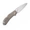 Une lame en acier inoxydable CPM MagnaCut finition stonewashed à cran, de forme Wharncliffe, ALFA Viper gravé sur la lame.