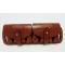8 tubes calibre 16 / 12. Système de fermeture et d' ouverture silencieux à l'ancienne. Port à la ceinture avec passants largeur 8 mm et hauteur 47 mm. Dos en velour marron.