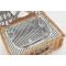 Poignée et attache de fermeture en polyuréthane, Panier en osier avec doublure tissu.