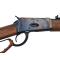 Carabine à levier de sous garde avec une crosse en noyer séléctionné au calibre 44MAG, canon de 51cm fileté au pas de 5/8x24. Canon rond bronzé présentant diverses traces de rayures dues au stockage en ratelier. Organes de visée : hausse réglable hauteur et dérive + guidon fibre optique rouge. Approvisionnée par tube magasin de 10+1. Levier standard LOOP avec cuir tressé protège main. Boitier jaspé avec de légères traces de manipulations et traces de laiton sur portière. Très joli bois de crosse en noyer sélectionné de qualité supérieure. Plaque de couche caoutchouc.