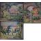 VINTAGE ANCIEN LOT 3 GRANDE PEINTURE AQUARELLE PAYSAGE PONT DLG ANDRÉ WILDER