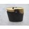 Ancien briquet en laiton dorée et métal laqué noir, a décor gravé en relief de fleur de couleur doré