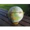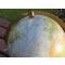 Le globe a une surface texturée en relief et il est soutenu par un support en métal décoré d'une patine bronze.