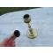 Voici un lot composé d'un ancien chandelier en laiton doré et patiné, avec joint a celui -ci un ancien éteignoir a bougie conique en cuivre plaqué.