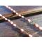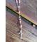 Très joli ancien chapelet de 38 cm de long composé de perles de couleur Fushia/Rose dragée avec croix ciselée en métal argenté.