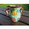 VINTAGE - Ancien vase balustre a deux anse, col évasé ondulé en céramique polychrome émaillée - Cerart Monaco (Vers 1950-60)