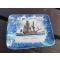 Trés joli ancien vide poche souvenir, de format rectangulaire en céramique peinte a décor polychrome avec navire vogant prés du littoral.