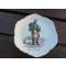 Ici au centre de l'assiette un homme en tenue représentant son métier " Marchand de Seaux Ferrés "