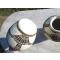 Conception en céramique motif effet craquelé avec motifs stylisés de palmettes typiquement dans le gout Art déco.