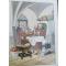 VINTAGE - Ancienne Lithographie Coloriée au Pochoir «Les Moines en cuisine »/«Le repas des Moines», Signée Harry Eliott (1882-1959)(XXé)