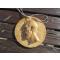 Élément de suspension intégré, le système d'accroche est situé sur la face avant en haut du médaillon avec ficelle d'attache de couleur blanche.
