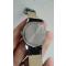 Aiguilles, trotteuse argentées sur cadran blanc patiné par le temps.