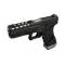 Pistolet airsoft VX01 Hex Cut AW Custom avec culasse métal allégée, blowback gaz réaliste, rail tactique et canon externe taraudé. Disponible en noir ou tan.