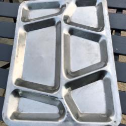 WW2 US LOT DE 2 PLATEAUX DE MESS MILITAIRE AMÉRICAIN BAKELITE ET INOX DATÉ 1943