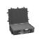 Cette valise à roulettes, extrêmement résistante et étanche, permet le rangement et le transport de matériel fragile. Elle possède des blocs de mousse prédécoupée