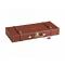 Les renforts d’angles en cuir ou en laiton (sur demande) lui assurent une parfaite tenue dans le temps, et un rangement pour accessoires est également prévu.