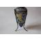 Joli et rare vase en forme d'amphore signé D'ARGYL verre soufflé a décor émaillé , monture en métal argenté D'Argyl. marque de fabrique employée à partir de 1928 par l'orfèvrerie Val(E.) et Cie située rue du Faubourg Saint-Martin au numéro 218 à Paris. bon état (un petit defaut de fabriquation au col)