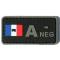 Velcros de groupe sanguin sur fond noir en pvc, sur velcros. Drapeau BBR et mention FR avec groupe sanguin.