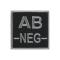Carré sur velcros indiquant le groupe sanguin du porteur, brodé sur fond noir.