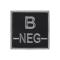 Carré sur velcros indiquant le groupe sanguin du porteur, brodé sur fond noir.