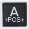 Carré sur velcros indiquant le groupe sanguin du porteur, en gomme pvc texte blanc sur fond noir.
