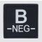 Carré sur velcros indiquant le groupe sanguin du porteur, en gomme pvc texte blanc sur fond noir.
