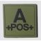 Carré sur velcros indiquant le groupe sanguin du porteur, brodé sur fond noir.