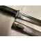 Vendu uniquement en France baïonnette allemande 1942, longueur totale 410 mm longueur de la lame 250 mm numéro 9339 / 42CVL traces de rouille sur la lame,plaquettes en ébonite,le poussoir fonctionne,fourreau en métal pas de numéro pas de marque vendu dans l'état.