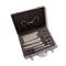 L'ensemble se range dans une valise solide et élégante à double fermeture, avec un intérieur en mousse de protection pour sécuriser chaque élément durant le transport. Les lames en acier 3RC14 assurent une durabilité et un tranchant remarquables, tandis que les manches en ABS avec rivets garantissent une prise en main confortable et stable.